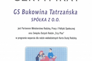 Już ponad rok z Kartą Dużej Rodziny w GS Bukowina Tatrzańska.